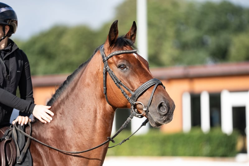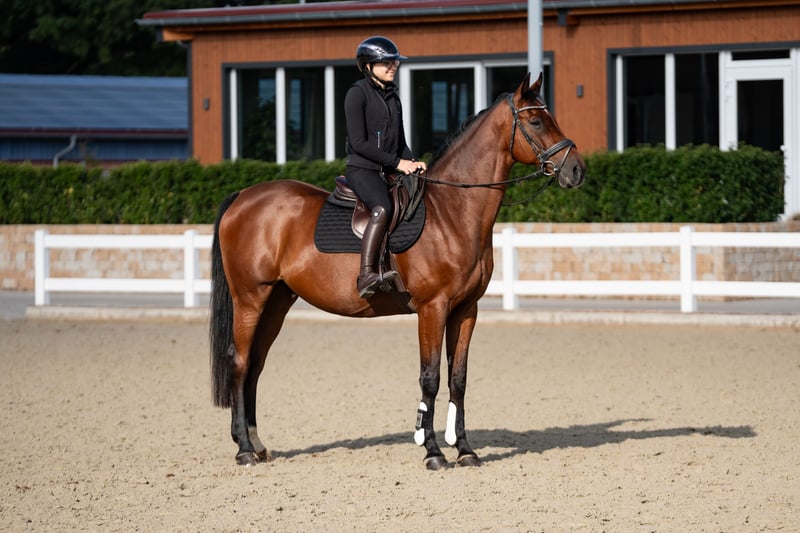 In the course over the colorful poles, Felix feels at home. He thrives in this environment and is full of motivation. In handling, Felix is always composed; nothing can easily unsettle him. He loads onto the trailer without any issues, behaves well for the farrier and veterinarian, and educates our young ones with friendly consistency in the open stable. Felix is familiar with life in a herd in an open stable, as well as box housing. For a relaxed ride at a walk or a sporty gallop through the woods, Felix is easily persuaded. But most of all, he loves to jump with fresh forwardness, which must be allowed, and with a scope and speed that makes hearts race. Those who want to be at the front in a jump-off have found the perfect partner in crime with Felix. If you would like to meet Felix in person or learn more, feel free to send a WhatsApp or SMS in advance!