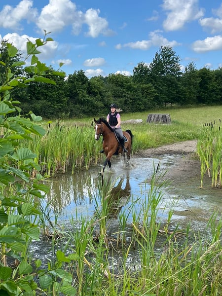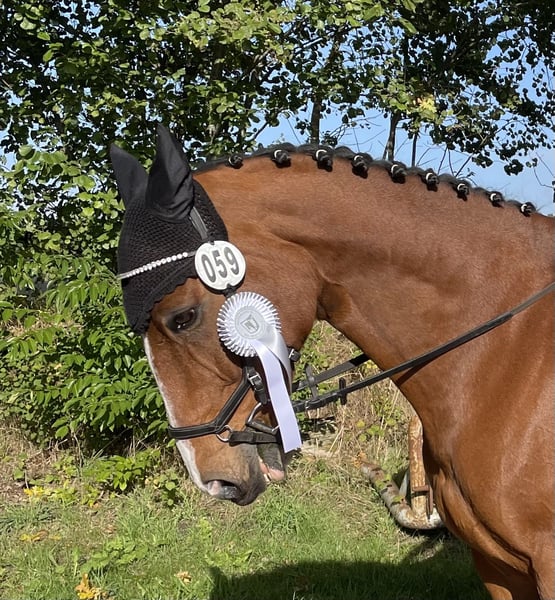 Da ich Baby und Pferd nicht vereinbart bekomme und Sir Louie dabei leider seit einiger Zeit hintenan steht, suche ich für ihn ein neues, liebevolles Zuhause. Louie ist in Dressur und Springen auf einem soliden A-Niveau, in der Dressur sind auch einzelnen Lektionen aus dem L-Bereich abrufbar. Er ist straßensicher, geht problemlos ins Gelände, kennt Geländepark und Strand. Seit 2012 ist er in meinem Besitz und steht seitdem nachts in der Box und tagsüber in reiner Wallach-Herdenhaltung auf Weide/Paddock. Mit Stuten stand er in meinem Besitz nicht zusammen, wie er sich da verhält, kann ich daher nicht beurteilen. Er hat keine Unarten, steigt nicht, bockt nicht, beißt nicht und macht auch sonst keinen Unsinn. Er ist trotzdem mit dem nötigen Go ausgestattet, um Spaß zu machen. Anhänger fahren ist gar kein Problem, genauso geht er in fremden Hallen/auf fremden Plätzen, ist auch bereits auf einzelnen Turnieren vorgestellt worden, kennt bereits die Kandare und lässt sich problemlos scheren. Er wurde immer durchgeimpft (Tetanus, Influenza, Herpes) und viermal jährlich entwurmt. Er wurde auch von Freundinnen und meiner Reitbeteiligung fit gehalten, sodass er derzeit trainiert ist. Nun die "Abers": 2016 hatten wir Probleme mit Magengeschwüren. Ich habe diese behandeln lassen und seit die Symptome verschwunden sind, habe ich auch keine Gastroskopie mehr machen lassen. Louie hatte 2017 und 2025 jeweils an den Vorderbeinen einen Sehnenschaden, welche ich jeweils mit Stammzellentherapie habe behandeln lassen. Beide Schäden sind komplikationslos ausgeheilt und schränken ihn auch nicht ein. Sein linker Vorderhuf ist ein Zwanghuf/Bockhuf seit Geburt an, weswegen ich ihn immer mit Beschlag vorne habe laufen lassen. Er benötigt bislang aber keinen Spezialbeschlag. Auf Koppel/Gras neigt er zu Schlundverstopfungen, weshalb ich ihn ausschließlich mit Fressbremse auf Gras lasse. Diese Punkte in seiner Vorgeschichte möchte ich auch im Kaufvertrag festgehalten wissen. Ob er für Kinder geeignet ist, kann ich nicht beurteilen, bisher hatte er keine Berührungspunkte mit Kindern, mein Baby ist noch zu jung fürs Pferd. Die Abgabe fällt mir sehr schwer, da ich sie rein aus Vernunftsgründen getroffen habe. ich gebe ihn nicht an Händler, nicht an Schulbetriebe ab! Zubehör kann gegen entsprechenden Aufpreis komplett oder teilweise miterworben werden. Eine AKU kann gemacht werden, ich bitte hierbei aber darum, Louies Alter und seine oben erzählte Vorgeschichte zu beachten. Die Kosten für die AKU trägt der potenzielle Käufer.