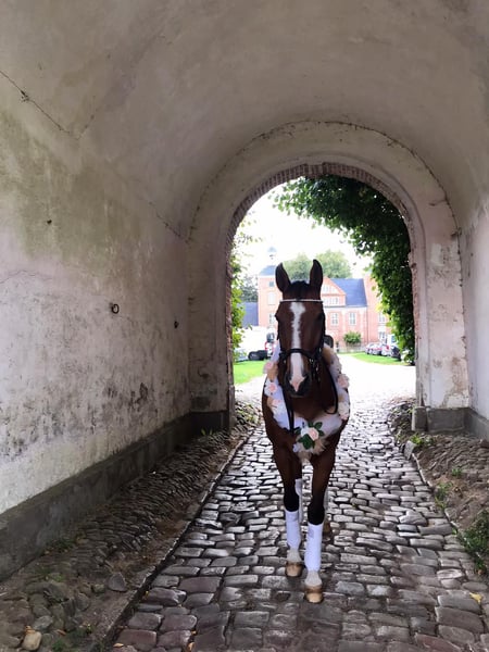 Comme je ne parviens pas à concilier bébé et cheval et que Sir Louie est malheureusement mis de côté depuis un certain temps, je cherche pour lui un nouveau foyer aimant. Louie est à un niveau solide en dressage et en saut d'obstacles, avec des exercices isolés du niveau L également disponibles en dressage. Il est sûr sur la route, sort sans problème en extérieur, connaît le parc d'extérieur et la plage. Je suis propriétaire de lui depuis 2012 et il passe ses nuits dans un box et ses journées en groupe de hongres sur pâturage/paddock. Je ne l'ai pas eu avec des juments, donc je ne peux pas évaluer son comportement à cet égard. Il n'a pas de vices, ne monte pas, ne cabre pas, ne mord pas et ne fait pas d'autres bêtises. Il a cependant le nécessaire pour être amusant. Le transport en van ne pose aucun problème, il s'adapte également à des manèges ou des lieux inconnus, a déjà participé à quelques compétitions, connaît déjà le mors et se laisse tondre sans problème. Il a toujours été vacciné (tétanos, grippe, herpès) et vermifugé quatre fois par an. Il a également été maintenu en forme par des amies et ma cavalière, donc il est actuellement en entraînement. Maintenant, les "mais" : En 2016, nous avons eu des problèmes d'ulcères gastriques. J'ai fait traiter cela et depuis que les symptômes ont disparu, je n'ai plus fait de gastroscopie. Louie a eu des lésions tendineuses aux membres antérieurs en 2017 et 2025, que j'ai fait traiter par thérapie par cellules souches. Les deux blessures ont guéri sans complications et ne le limitent pas. Son sabot antérieur gauche est un sabot contraint depuis sa naissance, c'est pourquoi je l'ai toujours ferré à l'avant. Il n'a cependant pas besoin de fer spécial pour le moment. Sur pâturage/herbe, il a tendance à avoir des obstructions de l'œsophage, c'est pourquoi je ne le laisse manger de l'herbe qu'avec un filet à foin. Je souhaite que ces points de son passé soient également notés dans le contrat de vente. Je ne peux pas juger s'il est adapté aux enfants, il n'a pas encore eu de contact avec des enfants, mon bébé est encore trop jeune pour le cheval. Il m'est très difficile de me séparer de lui, car j'ai pris cette décision uniquement pour des raisons de bon sens. Je ne le confierai pas à des marchands, ni à des centres équestres ! Des accessoires peuvent être achetés en totalité ou en partie contre un supplément. Un examen vétérinaire peut être effectué, mais je demande de prendre en compte l'âge de Louie et son historique mentionné ci-dessus. Les frais de l'examen vétérinaire seront à la charge de l'acheteur potentiel.