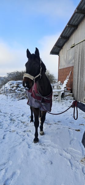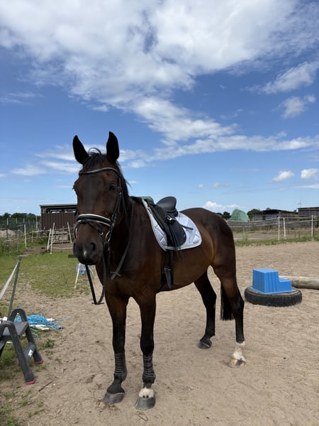 Ich verkaufe meinen 17-jährigen Holsteiner Wallach Conner. Er stammt ab von Contendro I x Langenhagen und hat ein Stockmaß von circa 1,78cm. Ich habe ihn selbst erst seit April 2025. Er ist mir sehr ans Herz gewachsen, aber er wurde mir als Anfänger verkauft und er braucht definitiv erfahrene Hände. Darum muss ich ihn leider abgeben. Er hat eine sehr liebe Seele und einen ruhigen Charakter. Er ist sehr aufmerksam, was vor allem Stimmkomandos angeht und lässt sich da super vom Boden mit arbeiten. Ob longieren oder Freispringen, er ist sehr fleißig und liebt Bewegung. Wurde früher bis M in der Dressur geritten wird aber nur noch als Freizeitpferd gearbeitet und verkauft. Er ist vom Grundsatz sehr fein zu reiten und bringt einen sehr anspruchsvollen Schwung mit. Er ist außerdem ein sehr schlauer Kopf und ließt sowohl den Reiter sehr genau und steigt hinter Muster und Wiederholungen sehr schnell hinter. Er hat aufgrund seiner Erfahrungen in der Dressurarbeit ein Verhalten beim Reiten entwickelt, an dem ich aktuell arbeite, aber eben an meine Grenzen komme. Er bleibt während des Reitens gern stehen und steht dann. Nur durch Treiben von einer weiteren Person am Boden läuft er weiter. Steigen, bocken macht er allerdings nicht. Er wird hauptsächlich mit gebissloser Trense geritten, da er das viel besser annimmt als eine normale Trense. Kennen tut er das aber auch. Allein geht er nicht gern ins Gelände, mit anderem Pferd oder einer Person ist das allerdings möglich. Auch als Handpferd macht er sich super. Er sieht gern überall Gespenster und braucht Zeit sich an neue Umgebungen zu gewöhnen. Besonders Kühe findet er nicht so witzig. An der Hand ist er da allerdings auch entspannter als mit Reiter. Alles bezieht sich eben auf meine Erfahrungen als Reiter. Ich kann sagen, wie er da vor dem Kauf war mit anderen Reitern. Er ist außerdem Verladefromm und läuft barhuf. Wird regelmäßig geimpft und entwurmt. Er wird nicht in reine Boxenhaltung abgegeben, nur Offenstall oder offenstallähnliche Haltung, da er Pseudonarkolepsie hat. Wir haben einen sehr guten Umgang damit gefunden und er weißt auch nicht die dafür typischen Verletzungen auf. Ich suche jemanden, der mehr Erfahrungen und Möglichkeiten hat ihn zu fördern. Er ist ein sehr schlaues Köpfchen, welches schnell hinter Aufgaben steigt. Er braucht viel Abwechslung und einen erfahrenere/n Person/Reiter, der das Händeln kann. Er macht unglaublich Spaß zu reiten und zu arbeiten, aber ich bin ihm mit meinen Fähigkeit und Hilfsmöglichkeiten einfach nicht gewachsen. Er hat einen angefertigten Dressursattel, der erst im April von Sattler kontrolliert wurde. Dieser kann bei Interesse gern zusätzlich miterworben werden. Es ist kein Notverkauf. Bitte nur ernsthafte Anfragen. Und es gilt definitiv Platz vor Preis! Ich bin ebenfalls unter 0174/2305087 zu erreichen.