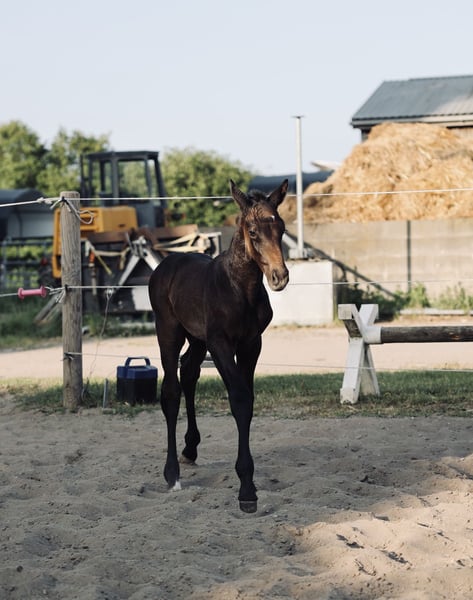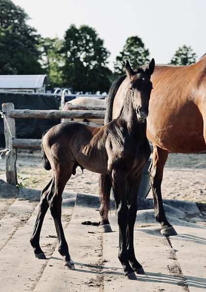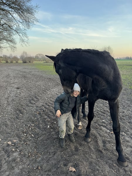Date of birth: May 15, 2023 Height: approx. 1.68 m Cloudrush (Klöschen) was bred by me and is now in the final stages of becoming a riding horse. His papers show a promising lineage for show jumping. He is already a gelding and enchants everyone with his honest character and his caution around small children, dogs, etc. An absolutely reliable partner for the future. He is familiar with dogs, children of all ages, tractors, and cars, is halter-trained, and is presented to the farrier every 6-7 weeks. His vaccination status is complete. For personal reasons, I am looking for a suitable home for my little one. I will only let him go to the very best and nurturing hands! Home before price! If you are interested or need further information, I am happy to help!