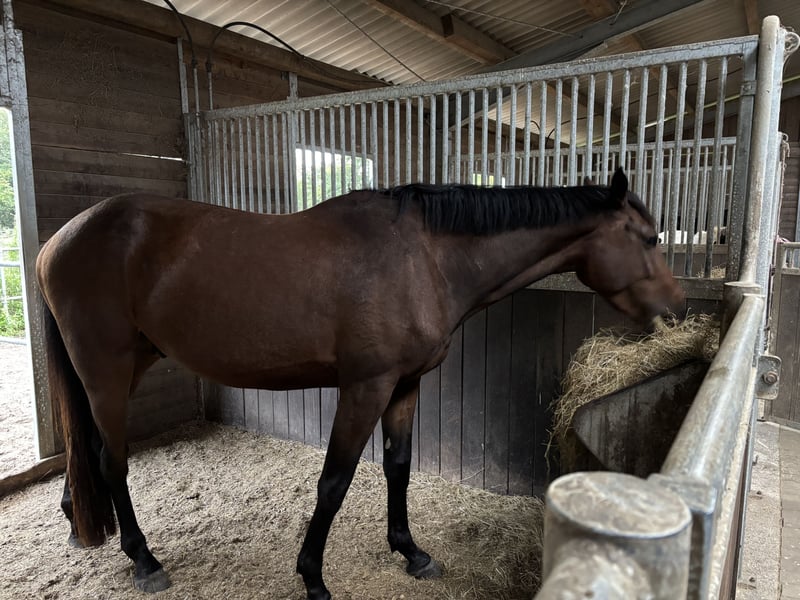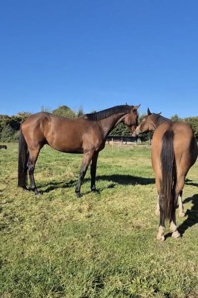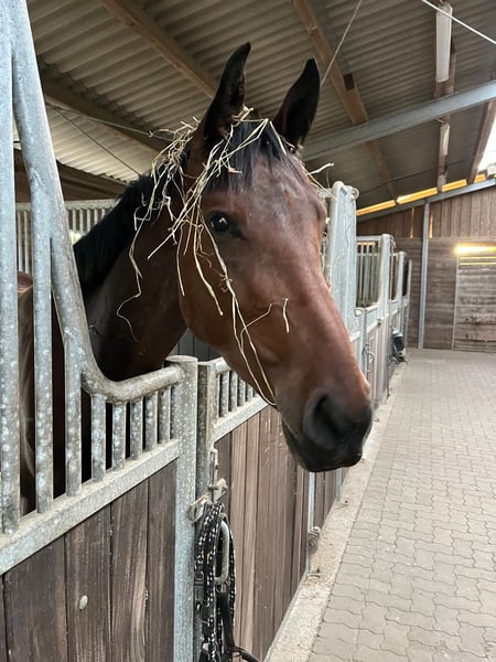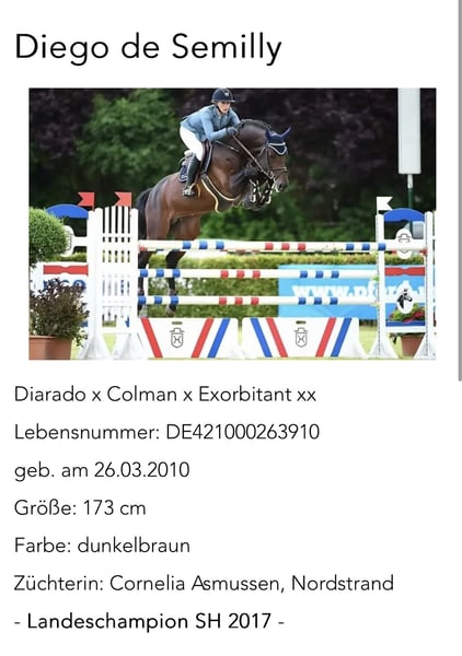 Zum Verkauf steht ein vielversprechender Holsteiner Wallach, geboren im Jahr 2022. Dieser elegante Braune hat ein Stockmaß von 1,70 cm und überzeugt durch sein sportliches Erscheinungsbild. Diego geht bereits an der Longe und ist am Boden gearbeitet. Horsemanship hat er ebenso kennengelernt und arbeitet hier konzentriert und motiviert mit. Im Gelände war er auch schon spazieren. Mit seiner schwungvollen Bewegungsart ist er ideal als gehobenes Freizeitpferd und bietet ebengleiches Potential sowohl fürs Springen und Dressur. Sein Vater gewann 2017 das Landeschampionat in SH (siehe Bild). Diego ist gelehrig und möchte gefallen. Vor allem möchte er gearbeitet und gefördert werden.. Gleichzeitig ist er sensibel und feinfühlig. Altersentsprechend testet er und braucht einen Reiter mit Erfahrung. Er wird roh zum selbst ausbilden verkauft. Nach einem großen Entwicklungsschritt in den letzten vier Monaten, ist er nun bereit für den Beritt und möchte loslegen. Diego ist ein Wallach mit einem treuen Wesen und Charakter der gefördert und entwickelt werden möchte. Er geht problemlos in der Wallachherde und kennt 24/7 Weide im Sommer sowie im Winter Box und Paddock. Bei Interesse oder weiteren Fragen stehe ich Ihnen gerne zur Verfügung. Besuchen Sie uns und überzeugen Sie sich selbst von diesem tollen Pferd! Er ist gesund und ohne bekannten Befund. Auf eigenen Wunsch kann eine AKU durchgeführt werden. Nur in beste Hände abzugeben - Platz vor Preis. Keine Händler oder Reitschulen.