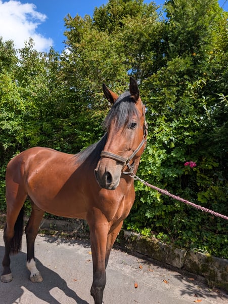 **Sales Advertisement: Holsteiner Gelding** For sale is a promising Holsteiner gelding, born in 2022. With an impressive height of 173 cm and his elegant brown coloring, he attracts all attention. This talented gelding shows great potential in jumping and impresses with his athletic expression as well as his friendly nature. He is well-mannered and has a solid basic training, which makes it easier for him to enter the equestrian sport. He is suitable for both ambitious riders and for leisure riding, and he is raised in a loving environment. If you are interested or have any further questions, please feel free to contact me. Visit us and see for yourself this wonderful horse!