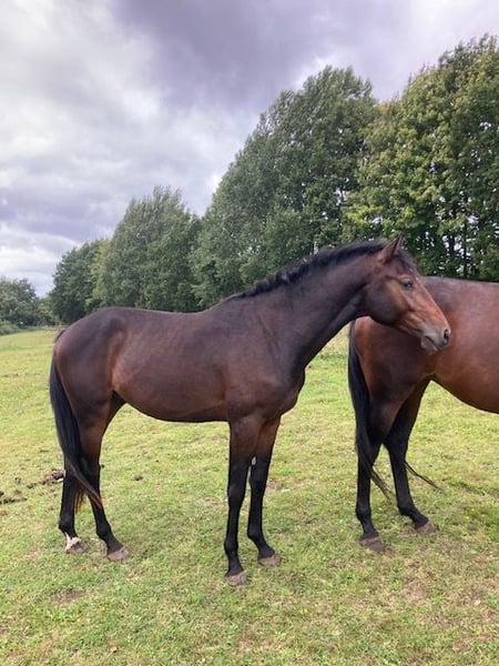 Extrem typvolles, prämiertes Hengstfohlen von dem Diarado-Enkel Dubliner, aus dem Holsteiner Stamm 3030. Hengstanwärter für 2025, Endmaß wird über 1,70m liegen. Die Mutter Darina VI wurde mit der Bezirksprämie ausgezeichnet und brachte mit Disney 78 v. Diarado (geb. 2016) einen Nachkommen mit Platzierungen bis zur Klasse S. Die Großmutter Nadine III v. Heraldik xx kann ebenfalls einige erfolgreiche Nachkommen vorweise, darunter Darth Vader 8 (v. Diarado) mit Erfolgen bis 1,40m und Walhalla 87, die in der Vielseitigkeit bis CIC2* erfolgreich ist. KONTAKT: Jens Hinkelmann Tel.: +49 172-2118971