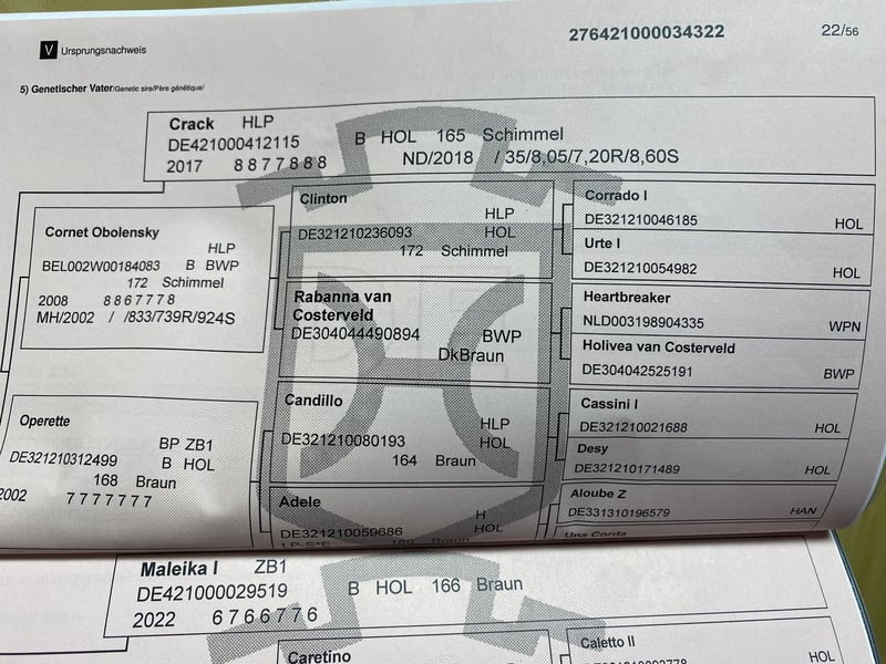 In vendita un elegante stallone Holsteiner di 3 anni, con un'ottima genealogia e le migliori caratteristiche per un futuro di successo nel salto ostacoli. Genealogia: Il padre è il stallone Crack, vincitore fino a 1,60 m. La madre, una figlia dell'eccezionale stallone Casall, attualmente si distingue nelle prove di salto ostacoli per la sua età, ottenendo voti eccellenti. La nonna Helene (di Quarz) ha ottenuto vittorie fino a S**, mentre l'avo Chiara (di Diarado) è stata piazzata fino a S*. Il stallone proviene dall'importante linea Holsteiner 7020, nota per aver prodotto numerosi cavalli sportivi di livello internazionale. Descrizione: Il cavallo è stato acquistato da puledro, è in ottima salute, ben muscolato, molto elegante nel portamento ed è stato allevato in modo appropriato – tutto l'anno in paddock all'aperto con molto movimento e con coetanei. Le radiografie effettuate ad aprile 2025 sono disponibili e prive di difetti. Finora lo abbiamo fatto saltare liberamente cinque volte. Durante queste sessioni si è dimostrato coraggioso, con grande senso di orientamento, prudente e dotato di capacità. È leggermente iniziato alla monta in tutte e tre le andature – un talento emergente per intenditori e sostenitori. Ha tutte le qualità per diventare un partner affidabile nello sport. Viene venduto solo perché, purtroppo, resterà troppo piccolo per me.