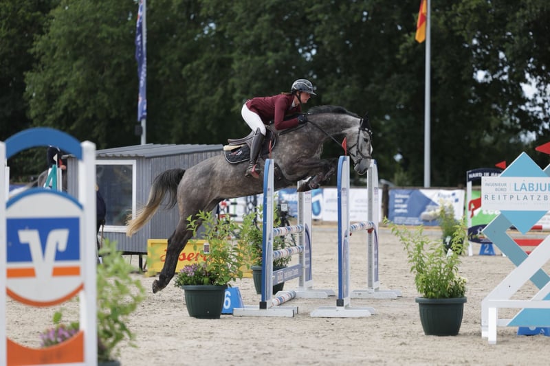 We are looking for a new home for our talented Holsteiner gelding! This promising young gelding already shows great potential in jumping and impresses with his ambitious and friendly nature. He is well-mannered, easy to handle, and has a balanced character. Colidero convinces with his versatility. He shows courage and is always motivated, both in the arena and at the first cross-country obstacles. Despite his age, he can be ridden easily by teenagers and is already familiar with trail rides, open fields, and bathing, both alone and in a group. He is suitable for both the ambitious rider and for leisure riding. We can also imagine Carsten as a hunter. A half-sister is already a successful hunter in the USA. PK 20-30t If you are interested or would like more information, we look forward to your message!