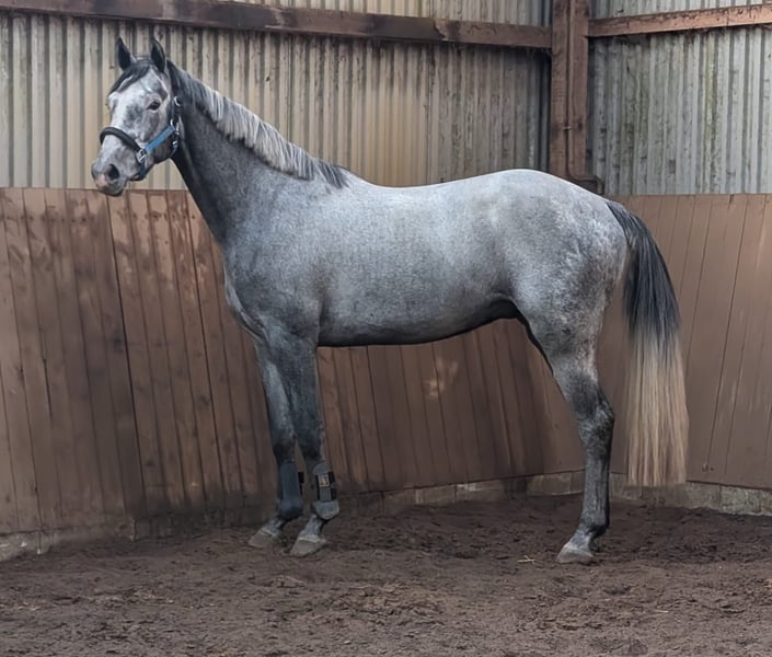 This young Holsteiner gelding impresses with his outstanding pedigree and promising potential for show jumping. On the sire’s side, he descends from Zuccero, a successful international show jumping stallion, and on the dam’s side from Diarado, renowned for his rideability and technical ability. The gelding is currently being gently backed and proves to be very well-behaved, eager to learn, and easy to handle. His balanced temperament, good rideability, and modern conformation make him an exciting young prospect with great potential for the sport.
