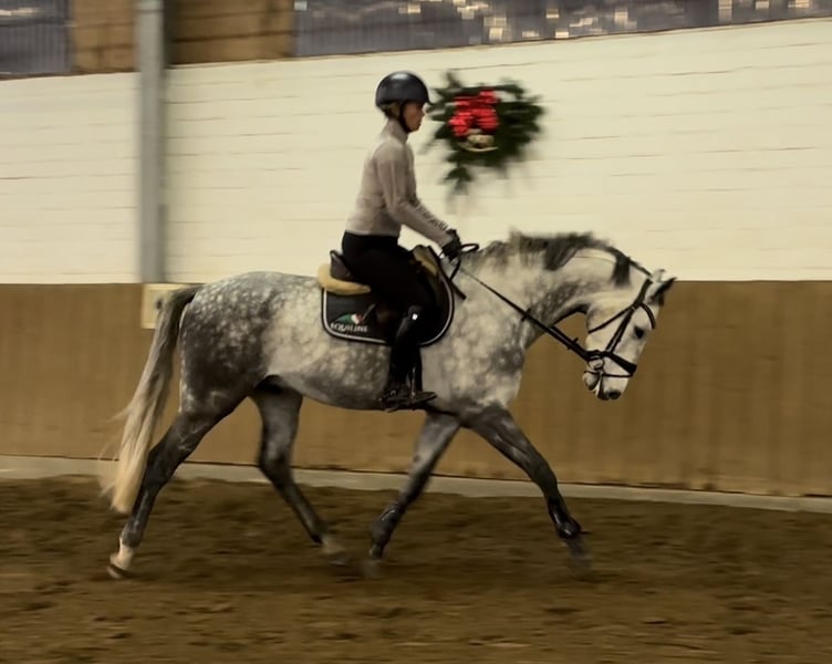 This wonderful grey gelding impresses with his intelligence and impeccable character. He is extremely light in the bridle, making him a pleasure to ride both in jumping and in daily dressage work. He is experienced in trail riding and demonstrates his calmness and resilience even in the terrain. We are looking for a sensitive rider who is eager to train a young horse with patience and calmness. If you are interested or have any questions, please feel free to contact us at 0177 2409954