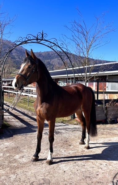 Rubio ist ein braver Wallach mit eher ruhigem Gemüt. Beim Springen zeigt er gute Ansätze, zieht zum Hindernis, macht einen guten Sprung und bleibt dabei im Parcours im Fluss, ohne stehen zu bleiben oder zu schauen. Galopp Wechsel funktionieren schon gut. Er hat bereits etwas Turniererfahrung sowohl im Springen als auch in der Dressur gesammelt und zeigt sich dabei stets unkompliziert und zuverlässig. Insgesamt ein angenehmer, braver Wallach mit solider Grundausbildung in beiden Sparten.