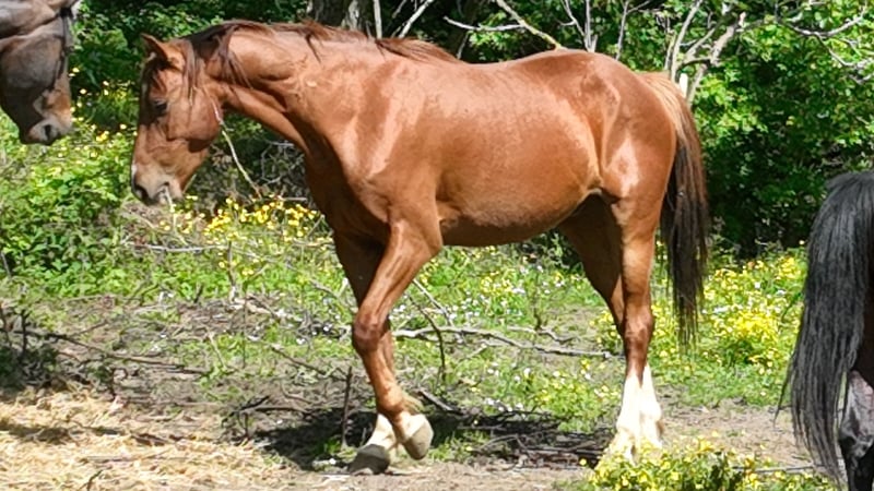 Kiarado is OC (origine constate IFCE), a 5-year-old gelding from Holteiner 18B1 gene lines going back to the most important key mares Dorette and Adrette of this legendary stamm with the addition of Selle Francais stallion Diamant de Semilly. Kiarado has a scar in the left side of his neck, reminiscent of a bite when he was 1 month old. It does not seem to disturb him. This stamm 18B1 grows slowly up to 8 and 10 years of age.