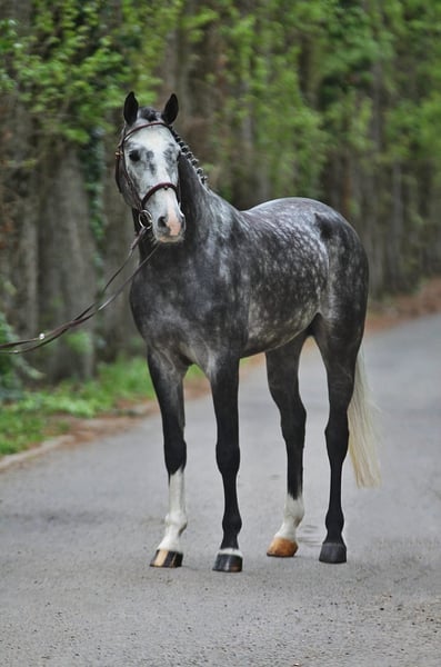 Poulain holsteiner de sport né en 2020 – 1,67 m – recherche une nouvelle famille *Kash de Prisse x (Le Tot de Semilly x Grand Veneur x Starter) x B-Celine x (Cero x Calido I x Cantus)* Ce jeune hongre impressionne par sa technique de saut exceptionnelle, qu'il démontre à chaque obstacle. Avec son allure élégante et son apparence exclusive, ainsi que ses mouvements harmonieux, il capte immédiatement l'attention. Le cheval est en très bonne condition physique et est régulièrement entraîné. Il possède un caractère très agréable, est équilibré, ce qui le rend adapté aussi bien aux débutants qu'aux cavaliers amateurs ambitieux. Le cheval est en parfaite santé et dispose d’un certificat vétérinaire récent. Le prix inclut le transport sur une distance jusqu’à 1000 km, ce qui facilite son acheminement vers son nouveau propriétaire. Pour plus d’informations, n’hésitez pas à me contacter.