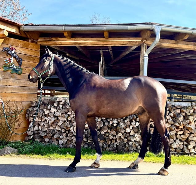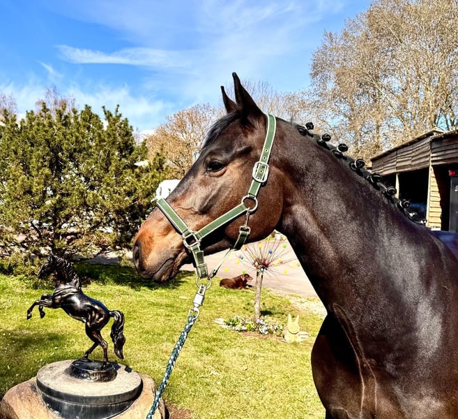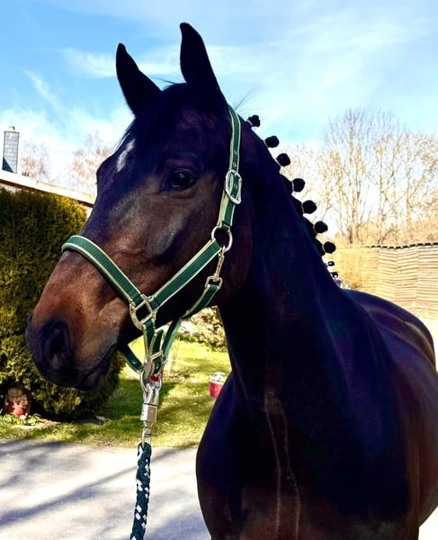 Exceptional children's horse with outstanding riding qualities. His pedigree features one top-class sire after another. He was repeatedly successful in his first show jumping competitions, winning in class L (1.15m), and is ready to move up to class M. He possesses the talent for the advanced level, demonstrating a perfect technique over fences, excellent overview, and caution. He consistently provides joy in daily handling. His lovable character and his fantastic attitude towards sport make him an ideal family horse. He is also very pleasant to ride in the terrain. Phone: +49 (0)171/4605744