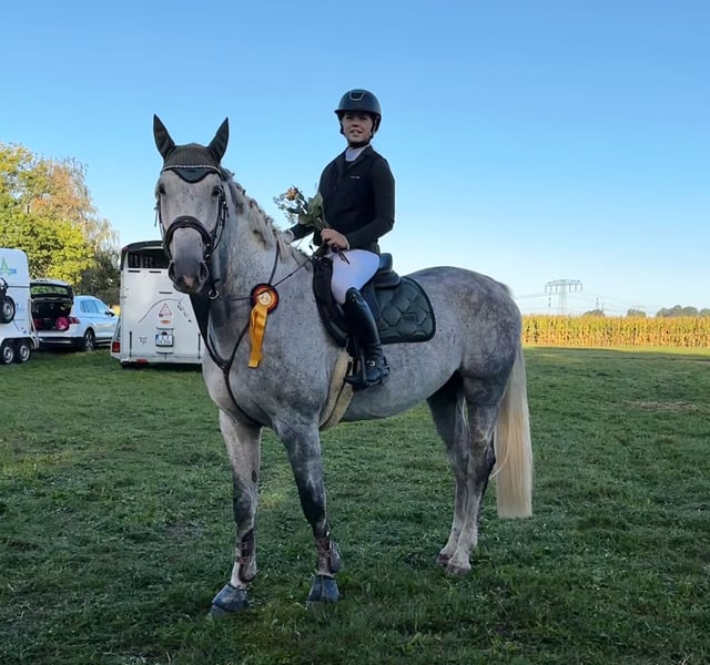 Schweren Herzens suchen wir für unseren 7-jährigen Wallach von Cellestial ein neues Zuhause, da sich unsere Lebensumstände durch Schule und Studium verändert haben und deshalb nicht mehr genug Zeit haben um ihm gerecht zu werden. Er ist ein echtes Ausnahmepferd – sowohl sportlich als auch im Charakter. Er wurde springbetont ausgebildet und überzeugt mit tollem Vermögen, Übersicht und Einstellung. Auf Turnieren war er bis Springpferde L siegreich (u.a. mit 7,8) und sammelte zahlreiche Platzierungen in Zeit- und Stilspringen mit Noten bis 8,0. Zuhause sicher bis 1,25 m gesprungen, Potenzial für mehr ist definitiv vorhanden. Auch in der Dressur bis A* solide ausgebildet und in Geländeprüfungen bis Kl. E platziert. Vom Charakter her ist er ein echter Herzensbrecher: verschmust, anhänglich, mutig und nervenstark. Er ist immer bei der Sache, lernt schnell und möchte seinem Reiter gefallen. Unkompliziert im Handling, brav beim Schmied, und geht problemlos auf den Hänger – egal ob allein oder mit anderen Pferden. Aktuell wird er von zwei jungen Reiterinnen gearbeitet und zeigt sich stets aufmerksam und motiviert. Ein Pferd mit großem Potenzial, das auch im Alltag Freude macht. Aufgrund seines Alters und seines Potenzials ist er nicht als Anfängerpferd gedacht. Wir wünschen uns für ihn ein liebevolles 5*-Zuhause, in dem er weiter gefördert wird, aber auch einfach mal Pferd sein darf.