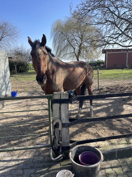 Schweren Herzens suche ich für meinen 7-jährigen Wallach (ca. 1,83 m) ein neues, passendes Zuhause. Er ist ein beeindruckendes Großpferd mit einem ganz besonderen Charakter. Im Umgang ist er sehr lieb, menschenbezogen und hat einen unglaublich sanften Blick, der einen sofort für sich gewinnt. Er ist ein sensibles Pferd, das Zeit braucht, um Vertrauen zu fassen. Hat er seinen Menschen gefunden und ist angekommen, zeigt er sich sehr anhänglich und kooperativ. Wir haben bereits mit dem Reiten begonnen. Aktuell läuft er noch etwas klemmig, weshalb eine Osteopathin hinzugezogen wurde. Es wurden einige Baustellen festgestellt, die laut ihrer Einschätzung mit weiterem Training und korrektem Reiten gut zu verbessern sind. Röntgenbilder der Wirbelsäule sind vorhanden. Reitvideos können bei Interesse gerne zugesendet werden. Ich wünsche mir für ihn einen ruhigen, erfahrenen Menschen mit Geduld, der ihm Zeit gibt anzukommen und weiter mit ihm arbeitet. Dann kann er sich zu einem ganz tollen Partner entwickeln. Ein Probereiten ist derzeit nicht möglich, da er beim Reiten mit fremden Personen noch unsicher reagiert.dazu bauen wir ihn gerade an der Longe wieder auf. Daher wäre ein longieren möglich Videos vom reiten könne gerne verschickt werden Platz vor Preis – wichtiger als alles andere ist ein liebevolles und passendes Zuhause. Bei ernsthaftem Interesse freue ich mich über eine Nachricht.