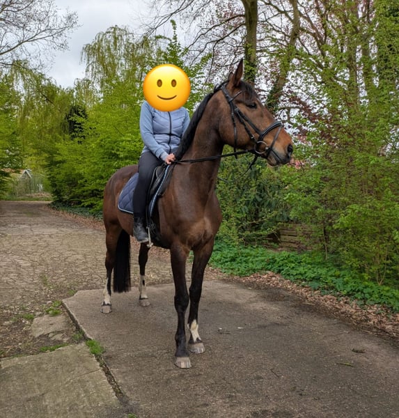 For sale is a 9-year-old gelding (Holsteiner-Trakehner cross) with a gentle nature and a big heart for his person. He stands at 16.1 hh, is well-built, solidly constructed, and impresses with his calm and friendly demeanor in everyday handling. Whether grooming, leading, picking up hooves, or loading – he behaves well and always cooperates. Under saddle, he is also pleasant to ride, responsive to aids, and motivated. He requires a sensitive rider who can ride with a soft connection and frame him from above. Campino should be ridden correctly from behind, as otherwise he loses rhythm and the Trakehner can become unbalanced. He is familiar with indoor and outdoor arenas and remains calm and composed. An ideal horse for an experienced leisure rider seeking a relaxed, reliable partner. Currently, he is not in training. 🩺 Important information: - He previously underwent a minor arthroscopy on the carpal joint with no lasting restrictions. - An injury to the chest (from a fence jump during recovery) has fully healed – no scars or functional limitations. ✨ He is sold as a pure leisure horse; with regular work, he could certainly develop further. 📍 Location: 26135 📄 Price: €6,000 negotiable If genuinely interested, I look forward to your message or call. Trial rides possible by arrangement.