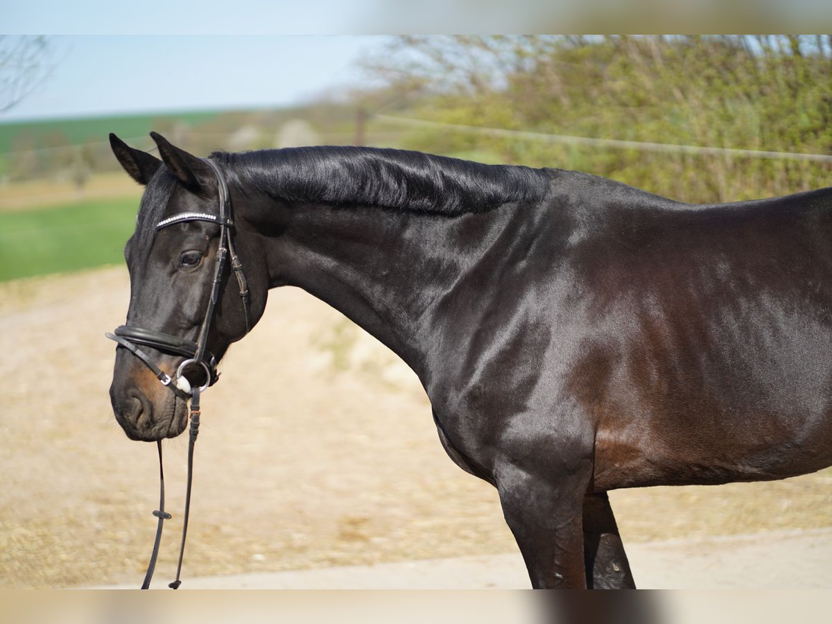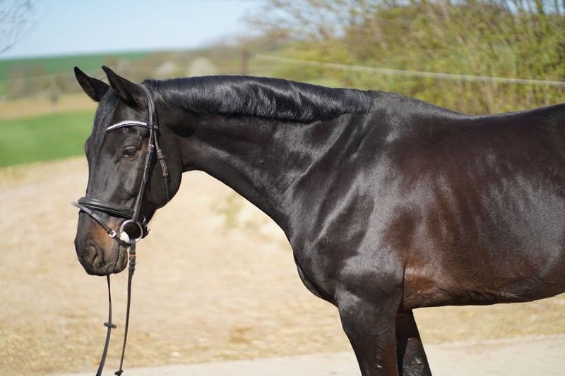 A handsome Holsteiner gelding, born in 2017, with an elegant black-brown coat, is available for sale. His pedigree is spring-focused, sired by Kannan out of a Contendro mare, making him ideally suited for sport. He has already been successfully presented at shows up to class L. Training has also included higher performance levels. "Queenie" impresses with his rideability and solid training. He is well-schooled in dressage, soft in the aids, and pleasant to handle. Flying changes are performed confidently. In the show jumping phase, he is motivated, careful, and eager to perform. In handling, he is completely straightforward and shows no bad habits. He is well-behaved both alone and in a group when hacking out. At competitions, he remains calm and relaxed and is always easy to manage. Loading onto the trailer or truck is trouble-free, and he stands quietly during loading. He is also exemplary with the farrier and veterinarian. The gelding is up-to-date on vaccinations for competition and is regularly treated by a veterinarian and osteopath. A reliable partner for ambitious riders, bringing joy both in sport and in daily riding. Further information and videos from recent competitions (March 2026) are available upon request.