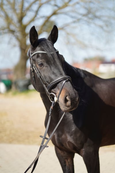 Zum Verkauf steht ein hübscher Holsteiner Wallach, geboren 2017, in edler schwarzbrauner Jacke. Abstammungsgemäß springbetont gezogen, von Kannan aus einer Contendro Mutter, bringt er beste Voraussetzungen für den Sport mit. Er wurde bereits erfolgreich auf Turnieren bis Klasse L vorgestellt. Im Training wurden bereits höhere Leistungsklassen erarbeitet. „Queenie“ überzeugt durch seine Rittigkeit und seine solide Ausbildung. Dressurmäßig ist er gut gearbeitet, fein an den Hilfen und angenehm in der Hand. Fliegende Wechsel werden sicher gesprungen. Im Parcours zeigt er sich motiviert, vorsichtig und leistungsbereit. Im Umgang ist er absolut unkompliziert und zeigt keinerlei Unarten. Er ist sowohl alleine als auch in der Gruppe im Gelände brav zu reiten. Auf Turnieren verhält er sich ruhig und gelassen und ist jederzeit gut händelbar. Er lässt sich problemlos alleine auf den Anhänger sowie in den LKW verladen und steht dort ruhig. Auch beim Schmied und Tierarzt ist er vorbildlich. Der Wallach ist für Turnier durchgeimpft und wird regelmäßig von Zahnarzt und Osteopath betreut. Ein zuverlässiger Partner für ambitionierte Reiter, der sowohl im Sport als auch im täglichen Umgang Freude bereitet. Weitere Informationen & Videos der letzten Turniere (März 2026) gerne auf Anfrage.