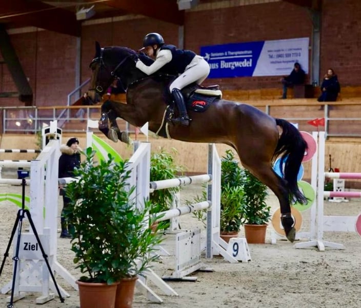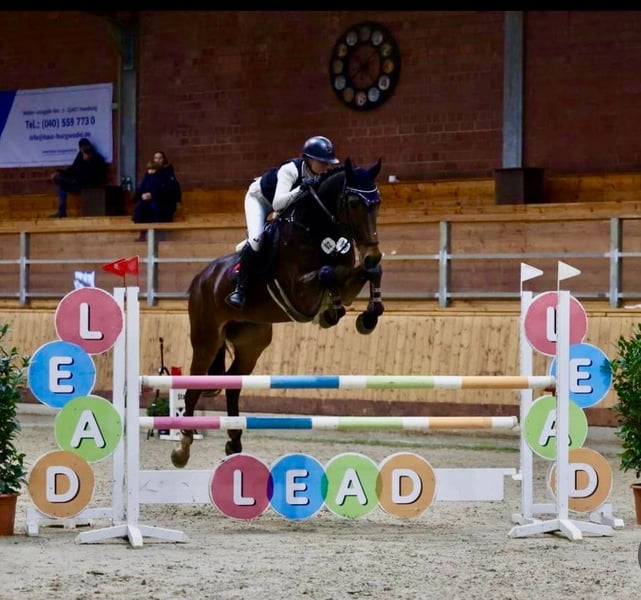 Successful show jumping horse up to 1.30 m – suitable for amateurs For sale is a talented and experienced show jumper with excellent pedigree. Pedigree: Million Dollar x Comando I Year of birth: 2012 Height: approximately 172 cm (16.1 hh) The horse has competed successfully up to 1.30 m and has won jumping competitions. It has been reliably ridden by amateurs and impresses with its routine, overview, and consistency in the course. In daily handling, it is gentle, uncomplicated, and very easy to manage. Under saddle, it possesses great talent, is honest at the jump, and gives the rider a very confident feeling. An ideal horse for ambitious amateurs or for stepping up into higher classes. Further information, videos, and viewing appointments gladly available upon request. +49 171 2704358