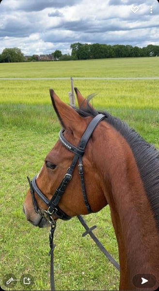 I am heartbroken to part with my 10-year-old Holsteiner mare, whom I am seeking to place in caring, loving hands. Unfortunately, I simply do not have enough time to give her the attention she deserves, and she has earned so much more. She stands at 16.1 hands, is incredibly affectionate and cuddly—truly a lap horse. She loves to be pampered and enjoys cuddling immensely! When it comes to riding, she has always been very well-behaved with us; we have ridden her both in the arena and in the field. However, I would not consider her suitable as a beginner or youth horse. This spring, she sustained a splint bone fracture, which was surgically treated and has healed well. Due to my limited time, she is not ready to be ridden immediately. Gentle trail rides at a walk are possible, and she can be gradually conditioned for more. Since she has some issues, she should no longer be used for competitive sport (she has competed in A-level show jumping with juniors). I am happy to discuss this in a personal conversation. But if you enjoy hacking, some dressage, or ground work, she could make a very happy partner. A bit of time and training would be necessary beforehand—she particularly enjoys equine kinetik exercises. Her pedigree might also make her interesting for breeding, with Stanfour 4 x Sir Shostakovich xx. She is not intended for stabling alone; she prefers an open stable or pasture. She should only have turnout for a few hours at a time, as she is somewhat light in weight. She is easy to load and stands well for the farrier. She is barefoot and does not need shoes. She has all necessary vaccinations and has been regularly dewormed. Her teeth were checked and treated in November 2024, and she has been regularly seen by an osteopath. A health certificate from March 2022 is available. I will only rehome her if everything feels right—dealers have no chance! Please only contact me if you are genuinely interested!