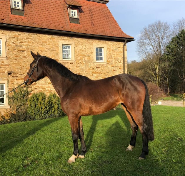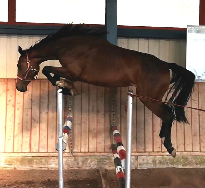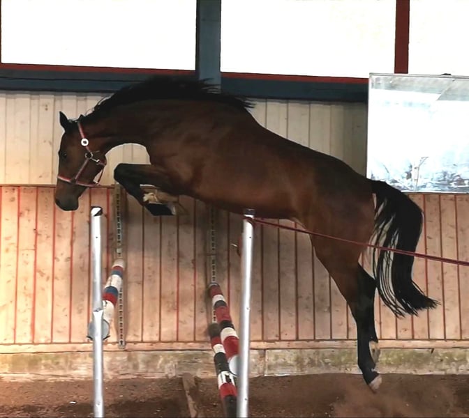 Elegant Holsteiner mare for sale – perfect for breeding This beautiful bay Holsteiner mare was born in 2015 and impresses with her graceful appearance and balanced temperament. Standing at 168 cm, she combines size and elegance, making her an ideal partner for breeding and jumping talent. She comes from the 18A2 Holstein dam line. She is currently in foal to "Conchezz," a Holst. Siegerhengst licensed stallion, 2024 breeding season. A progeny from this mare, as shown in the video, born in 2022 from Crack, is an outstanding son of the Bundeschampion under Richard Vogel. She originates from a renowned breeding line and possesses excellent genetic qualities. Her solid training and friendly temperament make her a reliable partner in all situations. Please feel free to contact me for more information or to arrange a viewing. Get in touch to learn more about this exceptional mare!