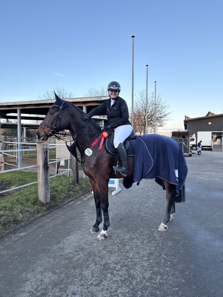 Holly K 3 is a 2015-born Holsteiner mare with a height of approximately 172 cm. She is a sporty, eager-to-perform mare with a lot of talent over fences and a good work attitude. In show jumping, she proves to be motivated, attentive, and reliable. She remains rideable and pleasant to handle at all times. She has already competed successfully up to 120 cm and has placed several times. Holly has a solid basic education, a good overview at the jumps, and the right attitude for further sporting development. In daily training, she is uncomplicated, eager to learn, and receptive to her rider. She is being offered at a fair price due to her cribbing behavior. This does not affect her performance in sport but should be considered in her management. I am looking for a suitable new home for her with an ambitious rider who appreciates her qualities and wishes to further develop her. A trial ride is, of course, possible by arrangement. Serious inquiries with a brief introduction are very welcome.