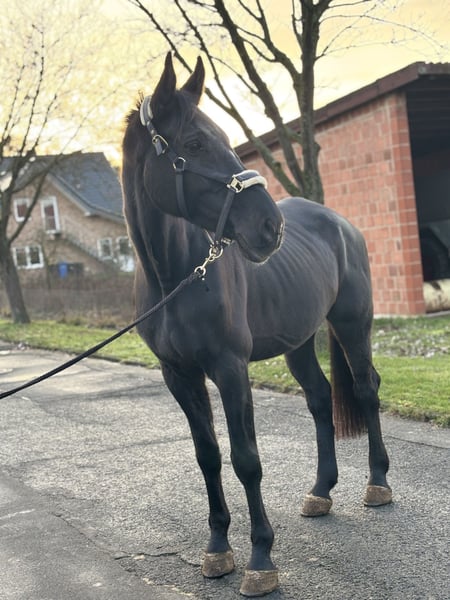 For sale is our 10-year-old mare Cantona due to lack of space and time. Cantona is currently pregnant by Monte Bellini. Riding is only possible to a limited extent, as she can become uncertain and block under more pressure. Therefore, we see her primarily as a broodmare, where she can better realize her full potential. In 2025, she already delivered a very typey and appealing filly, also by Monte Bellini (photos attached). Please feel free to contact us if you are interested or have any questions.