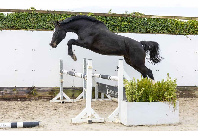 Fairmont VA is offered as a broodmare. She is a very attractive, modern-type mare with an uphill build and a good canter. She produced a foal last year and demonstrates quality movement and jumping ability. She jumps with good technique, is light-footed, quick, and able to accelerate easily. A mare with bloodlines and athleticism, making her very interesting for breeding. Sire Centurion (Cormint x Calido I) competed at 1.25m level and combines the performance bloodlines of Cormint (1.30m) with Calido I, one of the most influential Holsteiner sires, responsible for numerous 1.60m horses. This sire line is known for scope, reflexes, and mentality. Dam W-Cassady Z (Cassini I) comes from an exceptionally strong Holsteiner performance family. She produced Daikon (by Dominator 2000 Z), an approved Holsteiner stallion competing at 1.35m with international placings in Vejer de la Frontera, as well as Sandra XXXII (1.30m). Second dam Summer (Landjunge) is a Bezirksprämie mare and has produced several sport horses, including Clover VA (1.35m, multiple CSI wins) and Quality Summertime (1.40m), confirming the consistency of this family. Third dam Zita VIII (Ahorn Z) competed at 1.50m level herself and produced horses such as Hatschibuh (1.50m), Nabab de Calando (1.45m), Cardero (1.60m, approved HOLST/SF), and multiple offspring competing at 1.30m level and above. Fourth dam Togo (Caletto I) is the foundation of this performance line and produced several sport horses and approved stallions, including Alido (1.40m, approved ZfdP). Fairmont VA combines a modern type, athletic qualities, and an exceptionally strong damline full of sport horses and approved stallions. A proven broodmare with excellent genetics, ideal for breeders aiming for the top in show jumping.