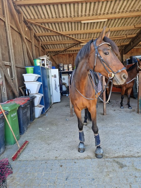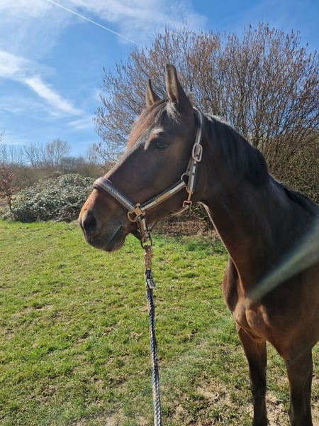 For sale is a Holsteiner mare born in 2013. She stands approximately 1.70 meters and is equipped with Go. Frodi is a horse with a heart of gold. She eagerly awaits her person every day and loves attention. Depending on her mood, she enjoys grooming and cuddling sessions, and treats are always welcome. She is versatile and up for almost any activity, with more movement being always better. Under saddle, she is consistently motivated and sensitive to leg aids. She never becomes headstrong in these situations. Balking and rearing are unfamiliar to her. Her favorite activity is hacking out. She is reliable in all weather conditions and not easily spooked. She can be ridden alone or in a group. She also performs well in the arena. However, she is not a push-button horse and requires regular work and engagement. Due to a cyst in her pastern bone, she should no longer be subjected to high loads and is being sold well below value. Relaxed rides or light work on the arena should pose no problem. The condition could potentially be managed with appropriate shoeing and various treatments. Frodi’s sensitivity under saddle means she is not suitable for beginners or reiners. She has previously had two foals and could also be of interest as a broodmare. Pedigree: Cormint × Cascavelle Frodi is vaccinated and dewormed. She has also been regularly checked by an osteopath and dentist. An ultrasound examination from early 2024 and current X-rays are available and can be sent upon serious interest. A personal viewing is possible by appointment. Currently, she is on pasture and cannot be tried under saddle. Price is negotiable; the place comes first. Feel free to contact us if interested!