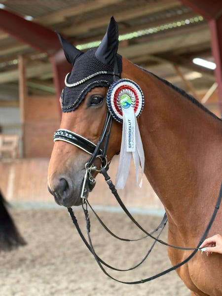 For sale is a 12-year-old Holsteiner mare standing at 16.1 hh. She is a true family horse that adapts wonderfully to her rider, whether her owner competes in S-dressage, her daughter is gaining her first competition experience, or simply enjoys relaxed trail rides: Quivella handles everything calmly and with joy. She is an absolutely reliable and trustworthy partner. In the current season, she has achieved placements and wins in M*, M**, and S* dressage tests. Her consistent, impressive gaits and expressive extensions make her a real eye-catcher in the arena. A recent, comprehensive veterinary examination without any sporting restrictions completes the package. Quivella is looking for a home where she will be appreciated as part of the family. If you are searching for a horse with the right attitude, please feel free to contact me for more information at 0172/3423408. No sales to dealers or intermediaries!