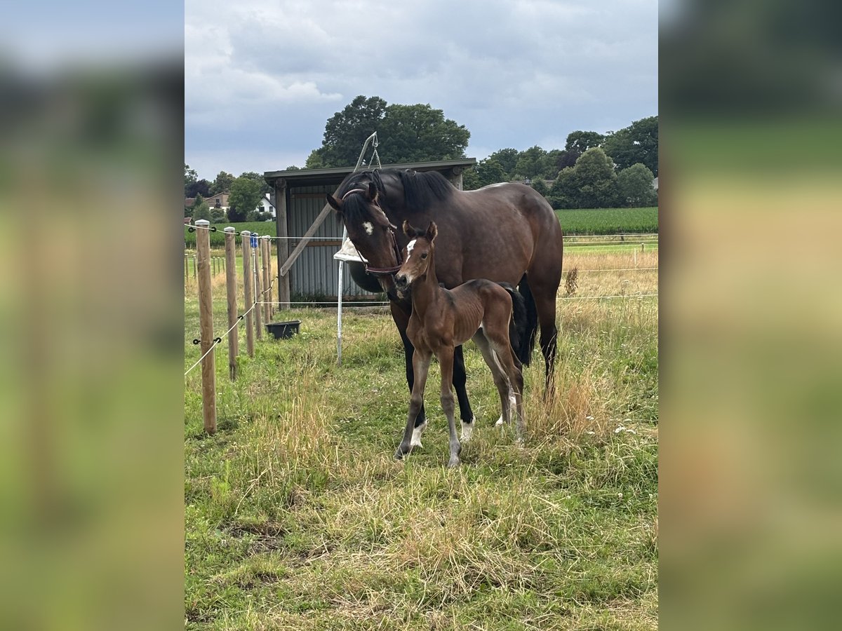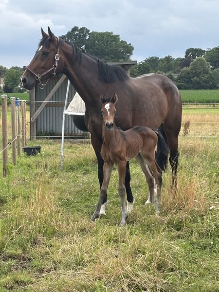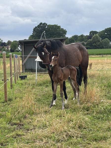 Due to a breeding decision, we are selling our 13-year-old Holsteiner mare (dam line 5330), sired by Uriko x Caretino. She stands approximately 1.75 meters (17.1 hh). A very uncomplicated broodmare, she passes on size and a lot of type. Her offspring all possess lively, relaxed movements and are very talented over fences. The mare has been in our possession for 2.5 years. She is familiar with box and pasture keeping, and, to our knowledge, has not been ridden. She is in excellent health, very robust, and adapts well. Photos 1-3: Mare with her last foal Photo 4: Mare herself Photos 5-6: Mare by Captain Fire (*2017), winner of L, placed in M* Photo 7: Mare by Corniolo (*2020), suitability placed, 4-year-old winner of free jumping class in Dithmarschen Photo 8: Mare by Corfu de la Vie (*2022), second place at 3 years old in free jumping class at Station Maas J. Hell Photo 9: Mare by Keaton (*2023) Photo 10: Mare by Toucento (*2025) Not a desperate sale, price is negotiable. For questions – just get in touch.