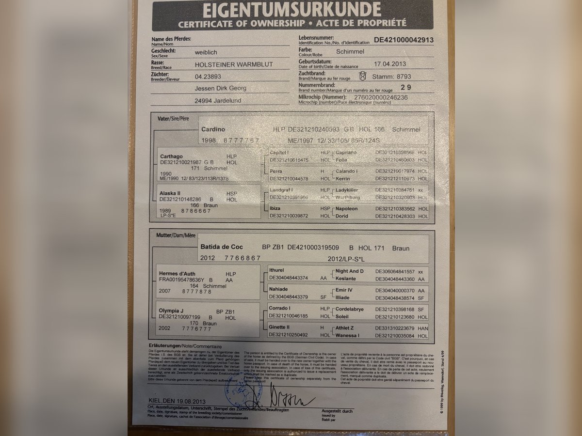 Siostra półbratka mistrza federalnego w kategorii 6-latków DAX. Miała już kilka źrebiąt. Potomstwo można obejrzeć.