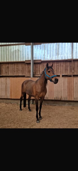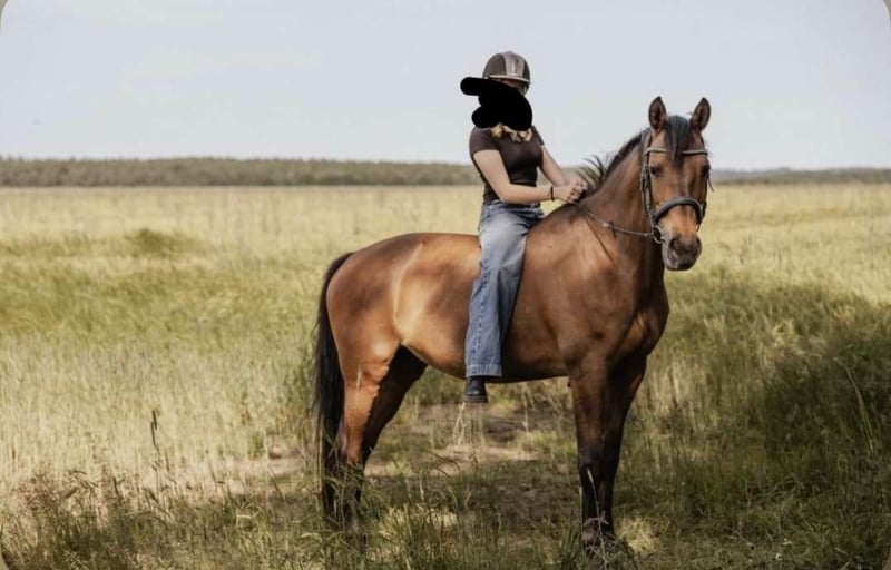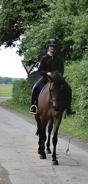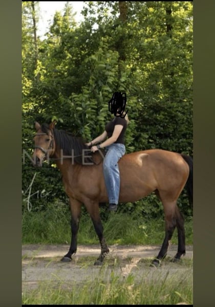 Hermine, 1,58m, 18 Jahre, ist von einem 13 jährigen, zierlichen Mädchen freizeitmäßig geritten. Hauptsächlich im Gelände, aber sie kennt auch die Arbeit in der Halle, unter dem Sattel und Bodenarbeit. Sie hat ein gut händelbares Temperament, deshalb für Reiter mit fortgeschrittenen Reitkenntnissen. Schmiede- und verladefromm. Mit komplettem , passendem Zubehör.