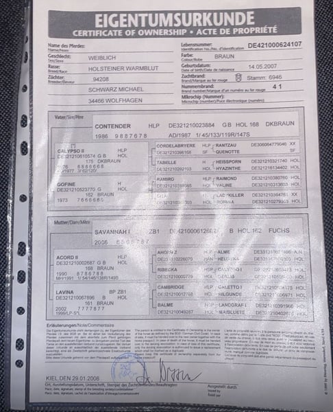 Verkaufe im Auftrag eine tolle Zuchtstute die für Juni 26 tragend ist vom Hengst Newmarket TN vom Team Nijhof. Zannah ist im Mai 2007 geboren und ca 1,66 m groß. Sehr lieb und unkompliziert. Hat einen gekörten Sohn, wurde zwischen durch Freizeitmässig geritten und gesprungen, wo sie viel Qualität bei Springen zeigte. Ist dann Aufgrund Schwangerschaft wieder in die Zucht und hat dieses Jahr ein Fohlen von Tattoo TN. Wegen Zeitmangel in ein schönes Zuhause zu verkaufen. https://www.horsetelex.com/horses/pedigree/1880767/zannah