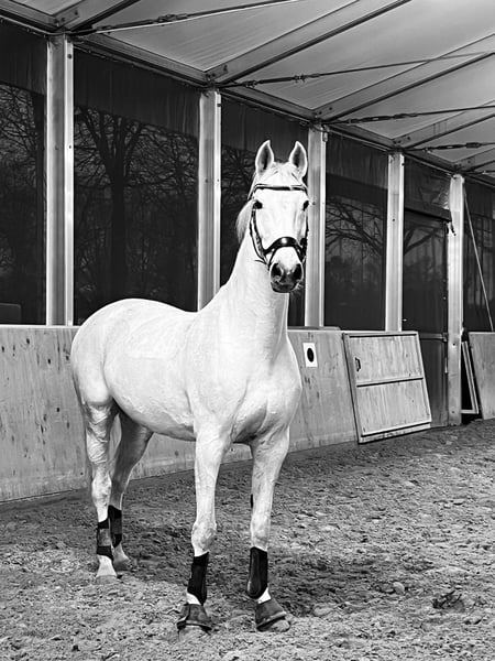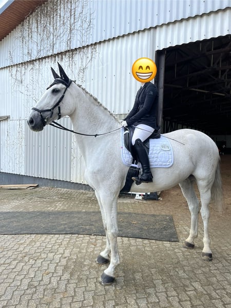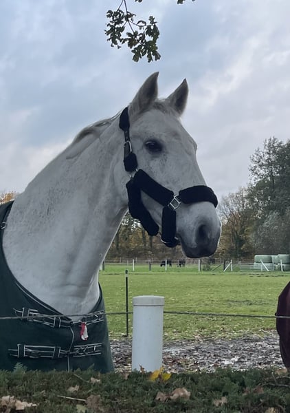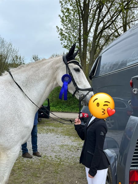 Cecret Chance is an expressive, large-framed grey mare with excellent Holsteiner bloodlines and an exceptionally loving nature. She was previously successfully competed in show jumping up to M-level and was later ridden by my daughter in E-dressage with placings. Today, due to my limited time, she is looking for a caring home where she can enjoy many more happy years as a leisure or simple dressage horse. She has a few minor issues, which do not affect her daily riding (X-rays available): - Mild osteoarthritis - Hoof capsule (pain-free with special shoeing) - Cyst in the front leg (since birth, without problems) Therefore, participation in show jumping is OUT OF THE QUESTION! However, she continues to participate in dressage and on the riding arena with joy and motivation! Cecret is a true reliable partner: - Always well-behaved and trustworthy - No bucking, rearing, or striking - Very affectionate and human-oriented – she loves closeness and trust In new situations (e.g., stable change, unfamiliar environment), she may initially be a bit nervous but gains confidence when approached calmly. For this reason, she is not a “classic” trail riding horse. Cecret is very herd-oriented, tends to be dominant but fair, and is familiar with mixed herds, box stall housing, and open stalls. Farrier and veterinarian visits are no problem. She can be a bit tricky at loading but remains manageable at all times. She should have at least 5 hours of turnout daily. Cecret is not looking for a new owner but for a new person to share her heart. I wish for her a forever home where she will be loved as a family and leisure horse. Breeding potential is also possible (never covered before) due to her excellent pedigree. NO URGENT SALE – PRICE IS NOT THE PRIORITY!! No sales to traders, middlemen, or riding schools!