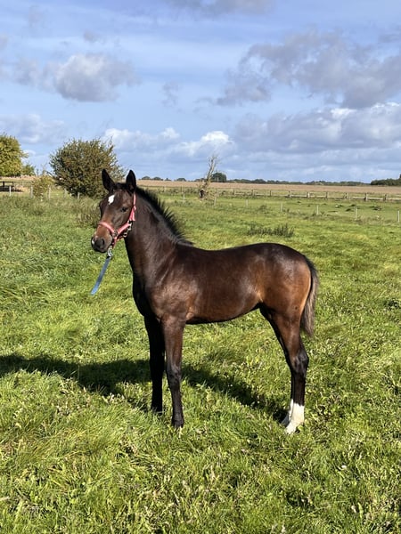 Typical and modern filly by Zirocco Blue x Diarado x Carthago x Quidam de Revel from the proven Holsteiner mare line 18B1. The dam line has already produced numerous licensed stallions and sport horses: MMM Ella is the mother of the licensed stallion Constant in Holstein. She also produced the mares Palisa and Ulla V when paired with the stallion Cor de la Bryère. Palisa herself competed at S-jumping level and is the mother of the successful sport mare Queen Liesa (Quidam de Revel) under Felix Haßmann. The full sister to Constant, Ulla V, is the mother of two licensed stallions in Holstein, foremost among them Quantum. Additionally, MM U-Cartana MS has already produced a licensed stallion in Zangersheide. The foal is only offered to the very best, supportive hands due to her quality. For serious inquiries, please contact me by phone: 0174/1724979.
