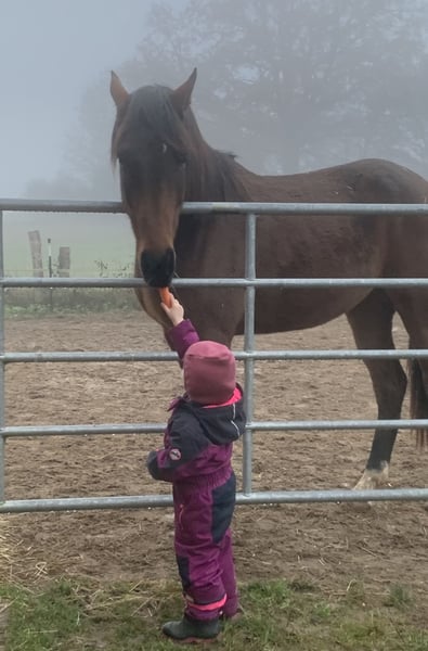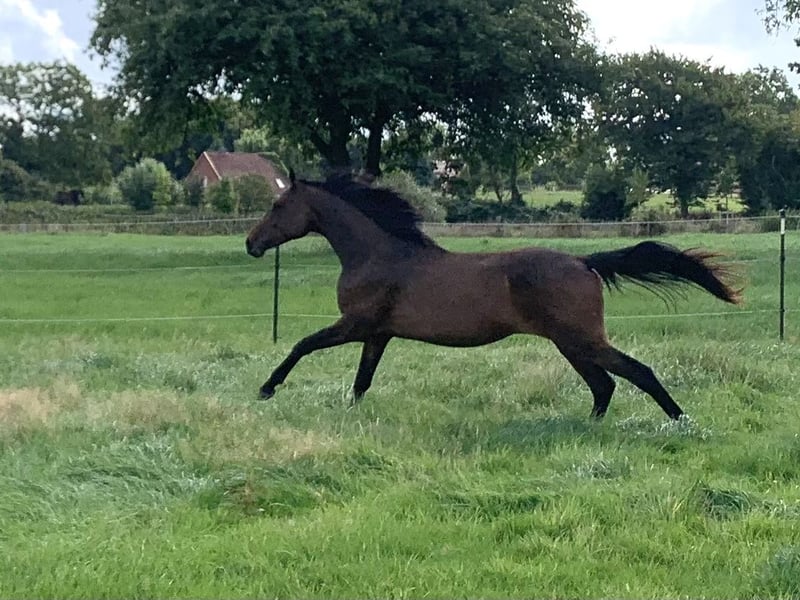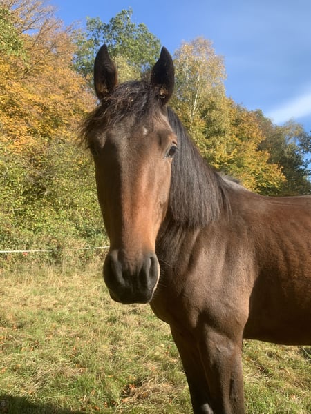 Hier kommt Rania. Die hübsche Braune ist im Mai 2023 bei uns geboren, erhielt kurze Zeit später die Fohlenprämie und wächst seitdem artgerecht im Herdenverband auf. Sie kennt das Führen genauso, wie den Straßenverkehr, Kinder, Hunde etc.. Beim Schmied ist sie artig und geht auch alleine auf den Anhänger. Selbstverständlich ist sie geimpft und regelmäßig entwurmt. Rania ist langbeinig und weiß sich zu bewegen. Ihre Papiere sind sowohl für den Sport, als auch für die Zucht gleichermaßen interessant. Abstammung ist in der Galerie ersichtlich. Eine Stute die klar im Kopf und dem Menschen stets zugewandt ist, was will man mehr? Nicht nur merken, sondern vorbei kommen und sich beeindrucken lassen!