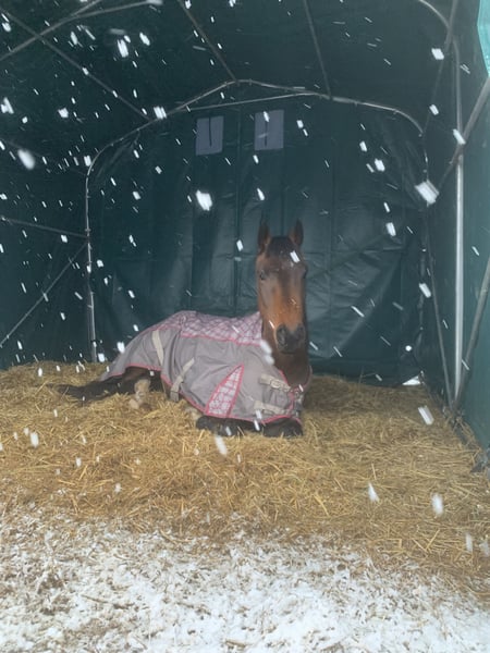 Here comes Rania. This beautiful chestnut mare was born in May 2023 and received her foal premium shortly afterward. She has been raised naturally in a herd environment since then. She is accustomed to being led, as well as to road traffic, children, and dogs. She is well-behaved at the blacksmith and loads onto the trailer alone. Of course, she is vaccinated and regularly dewormed. Rania is long-legged and moves with grace. Her papers are equally suitable for sport and breeding, with her pedigree visible in the gallery. A mare that is clear-minded and always attentive to humans—what more could you ask for? Don't just take our word for it—come by and be impressed!
