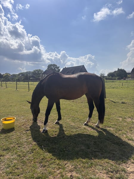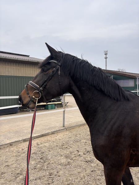 Zum Verkauf steht eine bei uns geborene 4-jährige Holsteiner Stute , die altersgerecht aufgewachsen und noch nicht angeritten ist. (Wir fangen gerade mit dem longieren an) Geboren: 2022 Alter: 4 Abstammung: in my Mind x DeChirico x Joost Rasse: Holsteiner Farbe: braun Stockmaß: ca 1,64m Sonstiges: Verladefromm, Schmiedefromm, Halfterführig, anlongiert, lieb im Umgang. Die Stute stammt aus dem renommierten Stamm 2495, aus dem zahlreiche erfolgreiche Dressur- und Springpferde bis zur schweren Klasse hervorgegangensind. Die Mutter wurde bis zur schweren Klasse in der Dressur vorgestellt, der Vater In My Mind ist ein erfolgreicher Dressurhengst. Die Stute ist brav und unkompliziert im täglichen Umgang, stets freundlich und menschenbezogen und möchte gefallen. Sie ist regelmäßig entwurmt und geimpft, die Zähne wurden kürzlich gemacht. Der Rücken wurde geröntgt und ist ohne Befund. Es besteht ein Schönheitsfehler, der sie nach aktueller Einschätzung nicht im Alltag oder in der Nutzung einschränken sollte. Sie wurde bereits einige Male longiert. Aufgrund der Witterung konnte die weitere Arbeit bislang nicht konsequent fortgesetzt werden, sodass sie weiterhin als roh gilt und ganz individuell ausgebildet werden kann. Die Stute verfügt über gute Bewegungen und bringt alle Voraussetzungen mit, um sich mit dem richtigen Management zu einem angenehmen Freizeit- und Turnierpferd zu entwickeln. Aufgrund ihres ruhigen und lieben Gemütes könnten wir uns auch vorstellen, dass sie ein Therapiepferd wird für Kinder oder Führungsseminare. Auch Handarbeit macht sie super mit. AKU kann natürlich jederzeit gemacht werden Bei Fragen oder weiterem Interesse melden Sie sich gerne.