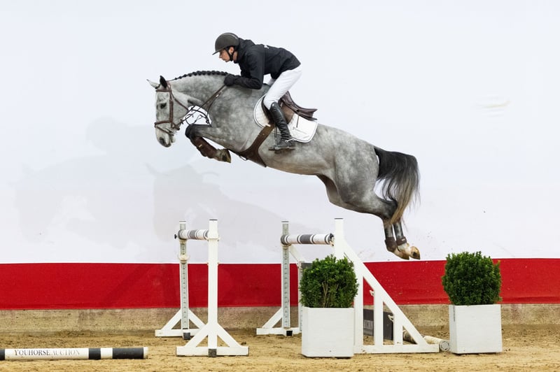 The four-year-old Clear Girl jumps with excellent technique and powerful thrust in the push-off. At home she jumps a small course and she is ready to compete at her first show. Her sire, Cornet’s Quaprice (1.40m), is the result of the combination Cornet Obolensky x Quaprice Bois Margot and comes from the same line as Cutting Edge, who competed at 1.50m with Cian O’Connor. The dam, K-Juna, is by the 1.55m stallion Clearway out of the 1.45m mare Fiona (by Helenenhof’s Catoo). This horse was previously auctioned, but as the buyer did not meet his obligations, the payment was never completed. The horse itself is exactly as described. Perhaps it’s no coincidence the previous buyer didn’t pay — this horse was simply meant for you!
