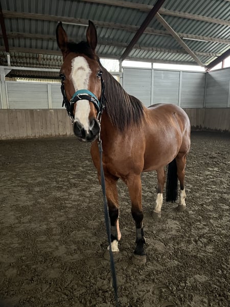 Holsteiner Stute von Acodetto x Caretino 5 Jahre alt, ca. 1,64 m groß. Die Stute ist angeritten und hat erste kleine Ausritte mit einem zweiten Pferd brav gemacht. Sie hat ein kleines Handikap, was sie aber bisher nicht einschränkt. Daher wird sie trotzdem nur als bedingt reitbares Freizeitpferd oder als Zuchtstute verkauft. Aufgrund eigener Krankheit wird sie momentan bevorzugt vom Boden gearbeitet. Wir sehen sie eher als Damenpferd da sie Männern gegenüber nicht sehr aufgeschlossen ist. Alles weitere kann gerne bei einem persönlichen Gespräch besprochen werden. Mit freundlichen Grüßen