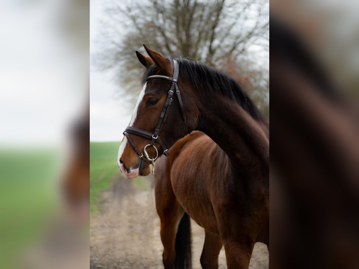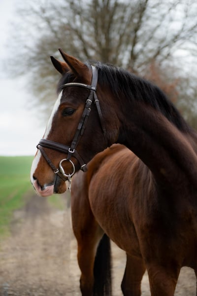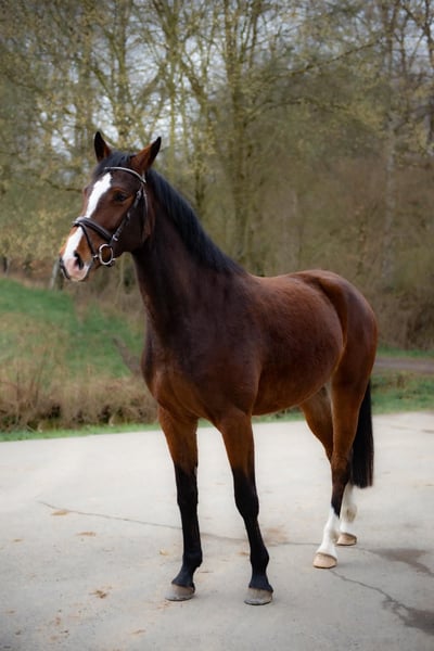 We are selling our beloved 5-year-old Holsteiner mare "Lilly" with a heavy heart. Lilly has been in my possession for three years and was purchased directly from the breeder in Schleswig-Holstein. She was lightly backed a year ago. Both in dressage work and in the field, she consistently shows her best qualities. Lilly is not yet a “show jumping pro,” but she has always been very well-behaved in this discipline as well. I perceive Lilly as a very attentive horse, always calm and well-mannered, which brings me great joy. I can also easily imagine her as a “family horse.” In summer and winter, Lilly is kept in a group of four mares. She is used to 24/7 turnout in the summer; in winter, she stays in her box at night and is on the paddock during the day. Lilly is only being sold because I am unfortunately very limited in time due to family growth. She will only go to the best of homes. Gender: Mare Height: approx. 1.63 m (16.1 hh) Year of Birth: May 2021 Color: Brown Breed: Holsteiner Additional features: All-rounder, ridden, halter-trained, lunged, includes equine passport See the last picture for her pedigree. Feel free to contact me for further questions.