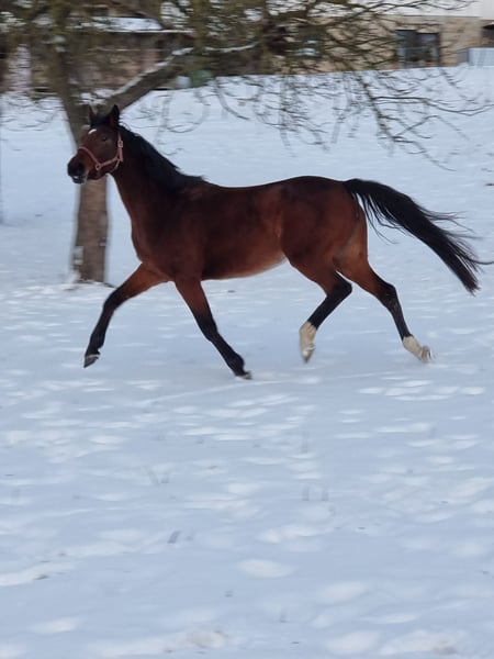 Oferujemy holsztyńską klaczkę z okręgu, Olivia KM, po Hickstead Blue x Comme il faut x Caretano, z linii 104A, urodzoną 10 kwietnia 2021 roku. W 2025 roku klaczka urodziła prestiżową klaczkę od Cascadello I (zob. zdjęcia), która znalazła już nowy dom w Hiszpanii. Obecnie klaczka jest gotowa, by pokazać swój potencjał sportowy. Olivia KM nie miała jeszcze okazji doświadczyć szkolenia w tym zakresie, dlatego jest sprzedawana jako "surowa". Podczas rejestracji jako klaczka miała 169 cm wzrostu. Ojciec Hickstead Blue, imponujący westfalski ogier z rocznika 2016, zdobył uznanie zarówno w sporcie, jak i hodowli. Z ponad 20 miejscami na podium w 35 startach pokazuje swoją wszechstronność i chęć do osiągania wyników. Pod kierunkiem Marie Ligges zwyciężył w międzynarodowym konkursie skoków na poziomie M*. Pod opieką Nico Lupino kontynuuje tę drogę. Jako zwycięski ogier, Hickstead Blue wyróżnia się mocnym rodowodem. Szczególnie warto podkreślić jego pochodzenie. Jego ojciec, Hickstead White, oldenburski skoczek, oraz dziadek ze strony matki, renomowany Chacco-Blue, przyczyniają się do jego wyjątkowej genetyki. Z prababki Danett pochodzą ogiery licencyjne: Alcatraz (od Accord II), Amidou (od Alkatraz), WT Lillix (od LioCalyon) oraz WT Lakota (od LioCalyon) z Drew Weberem. Prababcia Isett wydała na świat skoczki: Quicky H (od Quick Star) z Tiną Deuerer, Campino H 2 (od Calato) z Petrą Püttmer, Casino Royale 17 (od Calato) z Dr. Dominikiem Roederem, Cendrillon Marron (od Coriano) z Josefine Martinello, Zalazar D (od Zinedine) z Noa Ben Zeev oraz Victoria D (od Vagabond de la Pomme) z Taminą Seibold. Z bardzo interesującej i płodnej prababki U-Careta (z 8x Ramzes AA) wywodzi się już 9 koni, w tym odnoszących sukcesy w konkurencji wszechstronnej w USA, takich jak Friday (od Chin Champ) z Adisso Haganem i Clueso (od Clarimo) z Mayą Clarkson. Matka Holly KM, z powodu kontuzji, musiała wcześnie przejść na hodowlę. Otrzymała również premię okręgu i do tej pory wydała na świat 5 źrebiąt, z czego 4 otrzymały prestiżowe certyfikaty. Jej rodzeństwo cechuje się przyjaznym, otwartym i niezawodnym charakterem. Olivia chętnie zostanie obejrzana na miejscu po wcześniejszym umówieniu. Jej półbrat z 2025 roku, urodzony od Million Dollar (zob. inne ogłoszenia), również jest dostępny do obejrzenia. Również matka Holly KM jest do dyspozycji. Dalsze informacje na życzenie. Transport możliwy po wcześniejszym uzgodnieniu.