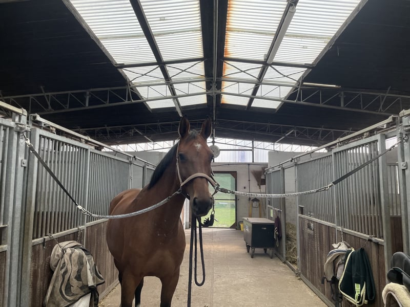 Wij verkopen uit onze familiebedrijf een veelbelovende jonge merrie, die niet alleen met kwaliteit, maar vooral met haar prachtige karakter overtuigt. Deze merrie is door ons voorzichtig onder het zadel gebracht en beheerst alle basisgangen veilig onder de ruiter. Ook heeft ze al kennisgemaakt met de eerste kleine sprongetjes en daarbij haar talent voor het springen bewezen. Ze beschikt over drie goede basisgangen, toont een uitstekende werkhouding en is in de dagelijkse omgang een absolute schat: bij de smid is ze braaf en laat ze zich probleemloos laden. Haar karakter maakt haar bijzonder – ze is gevoelig, maar altijd bereid om alles goed te doen. Geef je haar een beetje tijd, dan win je een partner die voor je door het vuur gaat. Aangezien ze zich nog aan het begin van haar opleiding bevindt en momenteel alleen onder het zadel is, zoeken we voor haar ervaren handen die plezier hebben in het verder opleiden van een jong paard. Deze merrie verenigt hart, kwaliteit en instelling – een echte toekomst hoop! Actuele röntgenfoto's zijn beschikbaar! Om ruitertoerisme te vermijden, kost het proefrijden €25, deze worden bij aankoop in mindering gebracht.