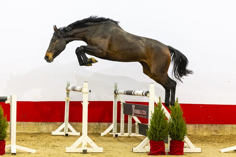 Veronica is a four-year-old mare from an exceptionally strong international sport damline. She shows scope, a modern canter and an alert attitude, but comes directly from pasture and is completely unbroken. To date, she has only lived in the field and has never been bred. Veronica is offered strictly as a broodmare. The seller has deliberately chosen not to continue her training for sport due to a previous hoof bone injury. She is not lame, as can also be seen in the videos, but is therefore not offered for higher-level sport. Sire Vagabond de la Pomme (Vigo d’Arsouilles x For Pleasure) competed at 1.60m Grand Prix level and is regarded as a top producer of scope and sport mentality. Dam Esina VA (Verdi TN) has produced several successful sport horses, including Ferdi VA (1.40m), an approved son of Emerald van ’t Ruytershof, as well as other international performers and approved stallions. The damline is packed with 1.40m–1.60m showjumpers, confirming its exceptional breeding value. Veronica is bred by one of Germany’s most renowned sport horse breeders. An honest, purely bred mare with an outstanding pedigree and strong potential for breeding.