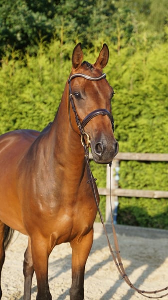 È in vendita una impressionante amazzone Holsteiner di cinque anni. Calima ci conquista per il suo carattere tranquillo, il talento nel salto e la prudenza. Nonostante la sua carriera agonistica ancora molto breve, può già vantare piazzamenti in prove di salto a livello A e L. Nel lavoro quotidiano, porta molta gioia, rende ogni giorno divertente ed è sempre desiderosa di fare tutto nel modo giusto. Il suo approccio quotidiano è semplice e senza problemi. Anche durante le uscite a cavallo, sia in compagnia che da sola, dimostra una grande maturità per la sua giovane età. Potremmo immaginarla come una fantastica partner sportiva per il suo prossimo cavaliere. Le radiografie senza evidenze patologiche sono disponibili. Per video e ulteriori informazioni, contattare preferibilmente al numero 0172 3241632.