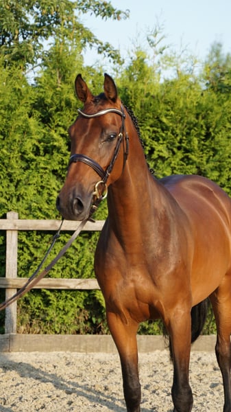 For sale is an impressive five-year-old Holsteiner mare. Calima impresses us with her composed nature, jumping ability, and caution. Despite her still very short competition career, she has already achieved placements in show jumping tests of classes A and L. In daily work, she brings a lot of joy, makes every day fun, and is eager to do everything right. Handling her daily is uncomplicated. Even when going out for a ride, whether with a partner or alone, she is very composed for her young age. We can imagine her as a great sport partner for her next rider. X-ray images are available with no findings. For videos and further information, please contact 0172 3241632.
