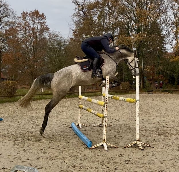 5-year-old Holsteiner mare with excellent pedigree for sale Noni 11 169 cm at the withers Sired by Halifax van het Kluizebos out of Canturo x Corofino I Holst: 18b1 Stamm (Toronto Raptor & Barbara Schnieper, Locanto RN & Ales Opartny) Well-behaved under saddle but still a bit green over fences Comfortable, active movements and a good canter. X-ray in October 2023 including the back Teeth checked Nice hooves and legs Videos and pictures available on WhatsApp. Private sale, no warranty or return.