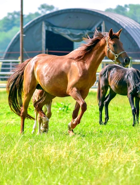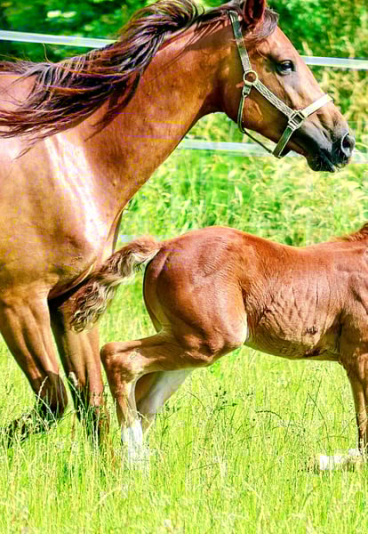 For sale solely due to the breeder's illness and the discontinuation of breeding (Only in loving, appreciative hands and in a first-class home) - 5-year-old Holsteiner mare - Dark chestnut roan (only roan markings, not a gray!) - Already awarded as a foal - Both parents successfully competed up to the highest level in dressage and show jumping Top pedigree Paternal lineage: Topas - Totilas - Gribaldi - Sandro Hit - Sandro Song Maternal lineage: Carano × Capitol 1 - Corrado 1 - Cor de la Bryere - The mare has never been injured or ill - Stable foundation and strong joints - Currently being backed (late due to her size) - Had her first very good foal at the age of 4 (last picture in the gallery) as a foundation for her later post-sport retirement - Currently has her second very well-developed foal at foot - She is now to start her sporting career lightly after weaning for the next season - Well socialized (mixed-age, gender-separated herd management 24/7 outdoors) - Knows the stable - Highly interesting for breeding, insemination, pregnancies, and births without issues - Excellent basic gaits - Super clear-headed (passes this on to her offspring) - Top temperament, absolutely relaxed when being backed - Very decent in handling and interaction - Sale can also be offered as a package with this year's colt foal at special conditions Videos available upon request in personal contact! Current vet check can be done at any time at the buyer's expense. Costs for significant deficiencies will be covered by the seller.