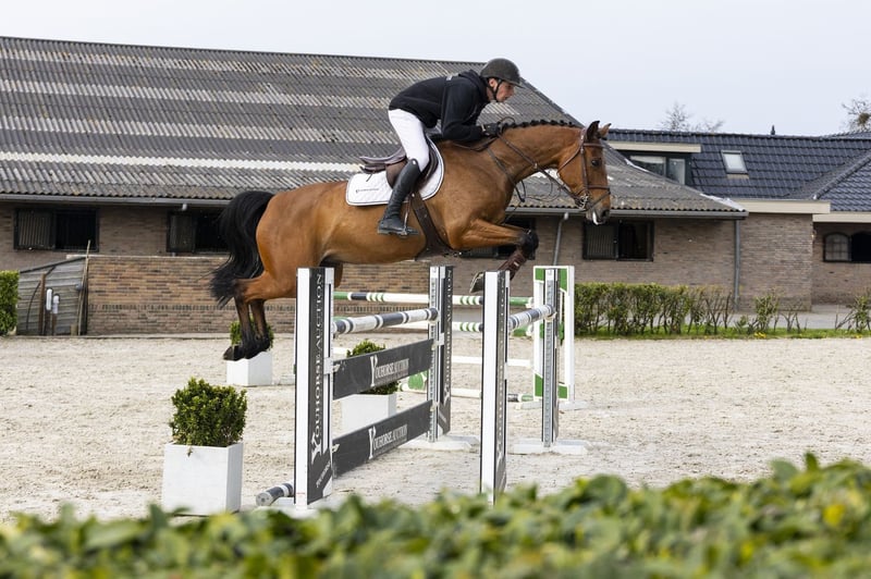 Beautiful, athletic mare to look at, a horse with a natural go; the engine is always on and brings you well to the jump. Has experience at 1.30m level and is pleasant to ride. A nice children’s horse with a lot of willingness and work ethic. Sire Livello (1.60m) competed at the highest level and is known for passing on scope, attitude and an active way of jumping. Dam Dona Dora comes from a strong German sport line and contributed to this performance-oriented family. Damline The damline is strong and proven with multiple horses at a high level. From the line come among others: Conchita van de Helle – 1.60m Celine LS La Silla – 1.60m Mentor LS – 1.55m Con Vados – 1.50m Casper vd Rode Poelhoeve – 1.50m Beethoven LS – 1.50m Mixcoac LS La Silla – 1.50m Additionally, multiple horses at 1.30m–1.45m level. A proven sport line with scope and performances up to the highest level.