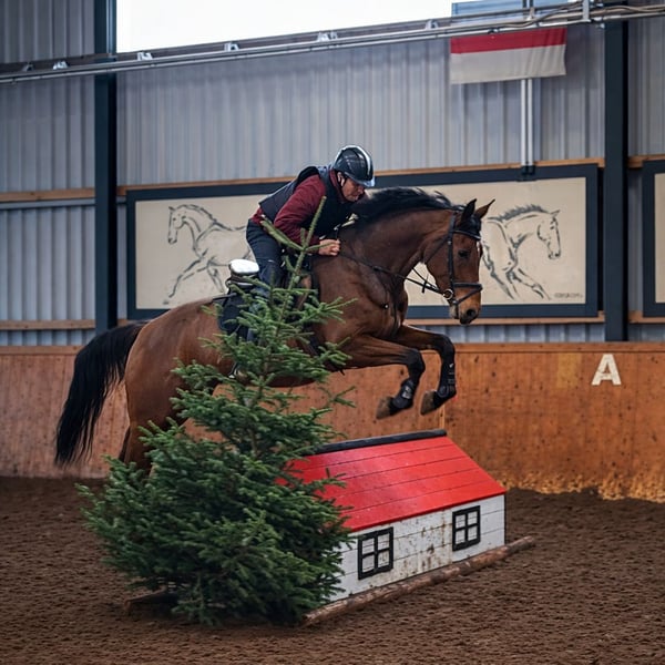 "Fleur" ist eine junge talentierte Stute, welche im Jahr 2019 geboren worden ist. Fleur ist mir ihrem Stockmaß von 1,68 m für jedermann etwas, egal ob groß oder klein. Sie stammt ab von Catoo x Dashing Blade XX. Die Stute ist mit einem super Charakter und viel Herz ausgestattet, sie möchte ihrem Reiter immer gefallen. Fleur ist eine ehrliche und ehrgeizige Stute, was sie zu einem tollen Partner für den Sport, aber auch den Freizeitbereich macht. Fleur brachte 2023 & 2024 zwei tolle Fohlen zur Welt, danach startete ihre sportliche Ausbildung (Die Fotos sind von Februar 2026). Sie entwickelt sich super und lernt schnell. So konnte sie bereits ihr erstes Turnier mit Bravour meistern und zeigte uns auch hier, was in ihr steckt. Mit Übersicht am Sprung und einem gutem Sprungvermögen, lässt sie hier noch viel Spielraum offen für ihren weiteren Werdegang.